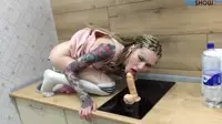 The scene begins in a dimlylit kitchen, with the woman dressed casually but alluring, her long braids bouncing as she moves.Her body is covered in tattoos that run up and down her arms, a beautiful blend of colors and symbols that complement her outfit of stockings and socks.She struts confidently towards the counter, her heels clicking on the tiled floor with every step, creating an irresistible aura as she prepares for an unforgettable encounter.The man, who is inked just like the woman, watches from afar with anticipation building within him, his heart racing at the sight of her.He cant wait any longer and joins the seductive woman by the counter, both of them feeling the electricity coursing through their veins as they engage in a passionate dance of desire.In this scene filled with intense passion and sensuality, they move to the kitchen counter where they take turns mounting a large, realistic dildo.The woman spreads her legs wide open, inviting the man to ride her from behind, their bodies glistening with sweat as the anticipation reaches its peak.With every stroke of his hips, he delves deeper into her core, riding her in a dominating manner that only fuels her insatiable hunger for more.Their moans and gasps fill the air, amplified by the silence of the empty house, as the scene shifts towards an oral encounter.The man gets down on his knees, his lips already wet with anticipation for the feast ahead, while the woman holds the dildo in place with her socksclad feet, allowing him access to her most sensitive parts.Their tongues dance in harmony as they explore each others erogenous zones, tasting their desire and celebrating their unity.The intensity of pleasure mounting with every flick of his tongue and plunge of the dildo against her clit, she reaches a crescendo that has her body convulsing uncontrollably as waves of pleasure crash over her.He cant resist any longer either his cock is throbbing with need and he stands up, his cock in hand, aiming for her spread cunt.He fucks her cunt relentlessly, using the dildo to mimic his movements as he takes her on a wild ride of passion.They exchange roles and positions, allowing each other to take control while still enjoying the electric connection that binds them together.This kitchencounter fantasy is filled with lust, domination, and submission their desire fueled by the sight of the vibrant tattoos covering their bodies as they explore each others bodies in a beautifully sensual display of passion.With the dildo spreading her cunt wide open, and their bodies entwining into a tangle of sweaty limbs and erotic pleasure, the scene reaches its climax in an explosion of desire and satisfaction for both of them.In this adult film, the man and woman never cease to surprise each other with their creative use of the kitchen counter, the dildo, and their insatiable desire for one another.It is a journey that leaves viewers breathless and craving for more, as they relive this erotic escapade filled with intense pleasure, sensuality, and an unbreakable bond between them.