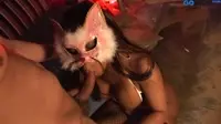 In a steamy scene filled with erotic passion, the beautiful and lusty woman takes on the role of a kinky cocksucker.Her sultry eyes peer from beneath a seductive mask as she eagerly performs oral pleasure on her strong, dominant partner, sucking on his magnificent cock.As the action heats up, her excitement grows, and she finds herself craving more than just an ordinary blowjob she desires to feel him deep inside of her.With unbridled enthusiasm, she moves to mount his rockhard member, positioning herself into a thrilling doggystyle stance.As her dripping cunt eagerly embraces the firm thrusts of his thick cock, the couple finds themselves locked in a fierce rhythm, with each powerful penetration bringing them closer to ecstasy.With every slide and glide, the womans luscious lips quiver in anticipation, her ass cheeks clenching and releasing in perfect synchrony.The tantalizing sight of her maskclad face, contorted with desire, only adds to the overwhelming arousal.Feeling every pulse and sensation, he slowly builds up his stamina, wanting nothing more than to leave her utterly satiated.Her maskcovered mouth continues to work its magic on his throbbing erection while she rides him from behind.The intoxicating scent of her tits, so close yet tantalizingly out of reach, fuels the intensity of their intertwined passion.The climax looms near, and their combined efforts bring them to the brink of a blistering orgasm.As her labia glisten with dew, she shifts from her doggystyle position to cowgirl, riding him with a newfound fervor.Their bodies contort in harmony, each muscle straining against the other, until the moment arrives that theyve been waiting for.Their moans of pleasure crescendo, and as one final surge of power courses through their bodies, an explosion of passion culminates into a blissful eruption, flooding her waiting cunt with his warm cum.In this ecstatic moment, there is no denying the undeniable chemistry that has been ignited between them by their shared carnal desire, encapsulating all that is sexiest in human nature.